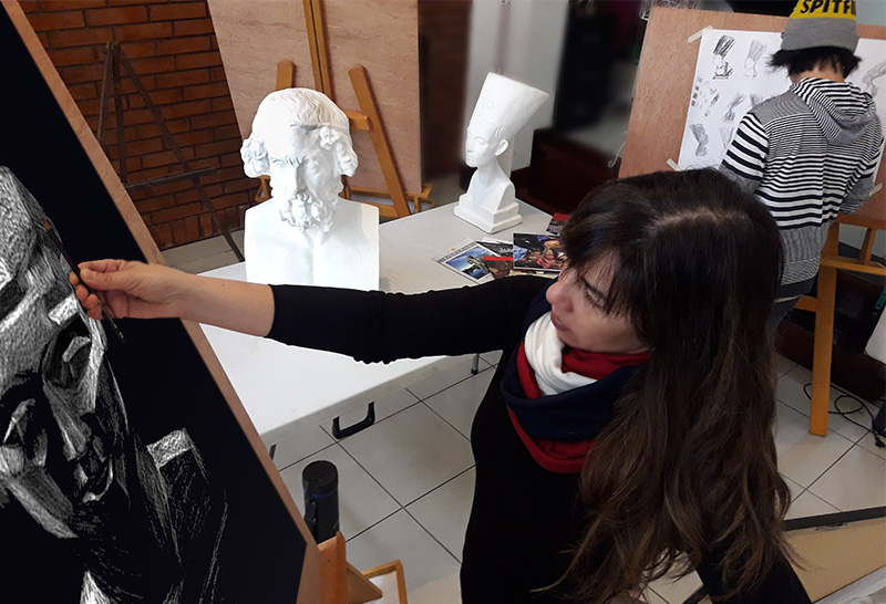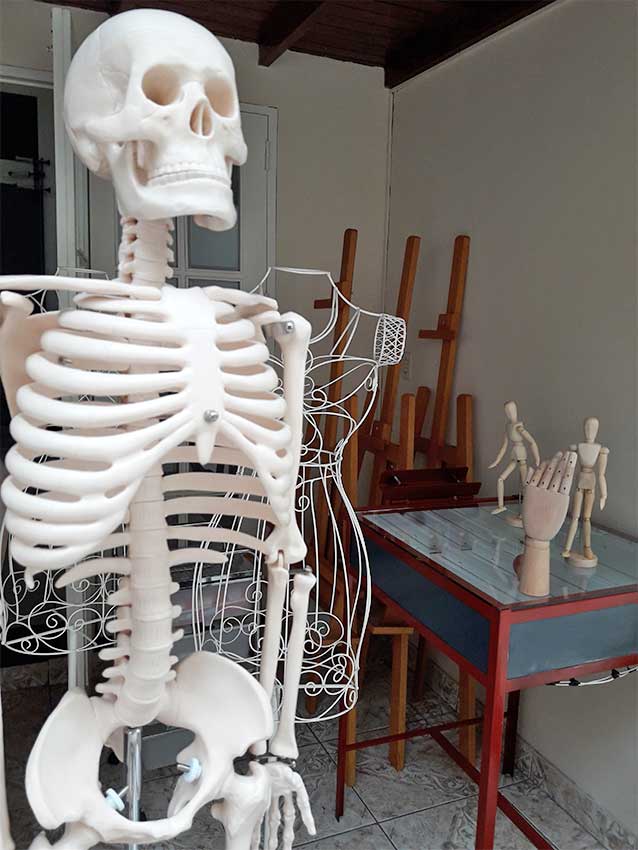 - Clases con modelo en vivo; esqueleto articulado y calcos.